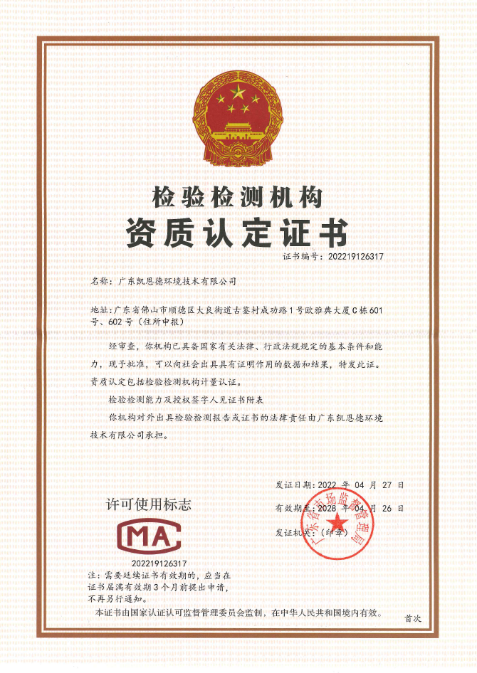 證書(shū)編號(hào):粵環(huán)監(jiān)證第2017003號(hào)