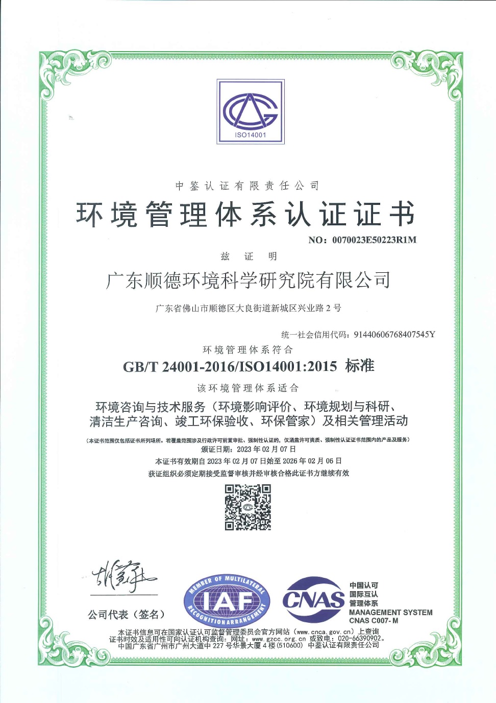 廣東順德環(huán)境科學(xué)研究院有限公司成立于1986 年,為全國(guó)首家由事業(yè)單位轉(zhuǎn)制的環(huán)境技術(shù)咨詢(xún)機(jī)構(gòu),為廣東省首批獲得原環(huán)評(píng)資質(zhì)的單位之一。經(jīng)過(guò)多年發(fā)展,我院業(yè)務(wù)范圍已涵蓋環(huán)境規(guī)劃與科研、環(huán)境影響評(píng)價(jià)、竣工環(huán)保驗(yàn)收調(diào)查、環(huán)境檢測(cè)、環(huán)境事件應(yīng)急預(yù)案編制、環(huán)保管家服務(wù)、國(guó)家排污許可證申領(lǐng)與維護(hù)、土壤污染狀況調(diào)查、水質(zhì)高光譜遙感監(jiān)測(cè)、清潔生產(chǎn)審核咨詢(xún)、危險(xiǎn)廢物鑒別、環(huán)境工程監(jiān)理、節(jié)能評(píng)估等等,是一家環(huán)境綜合咨詢(xún)服務(wù)企業(yè)。[更多]