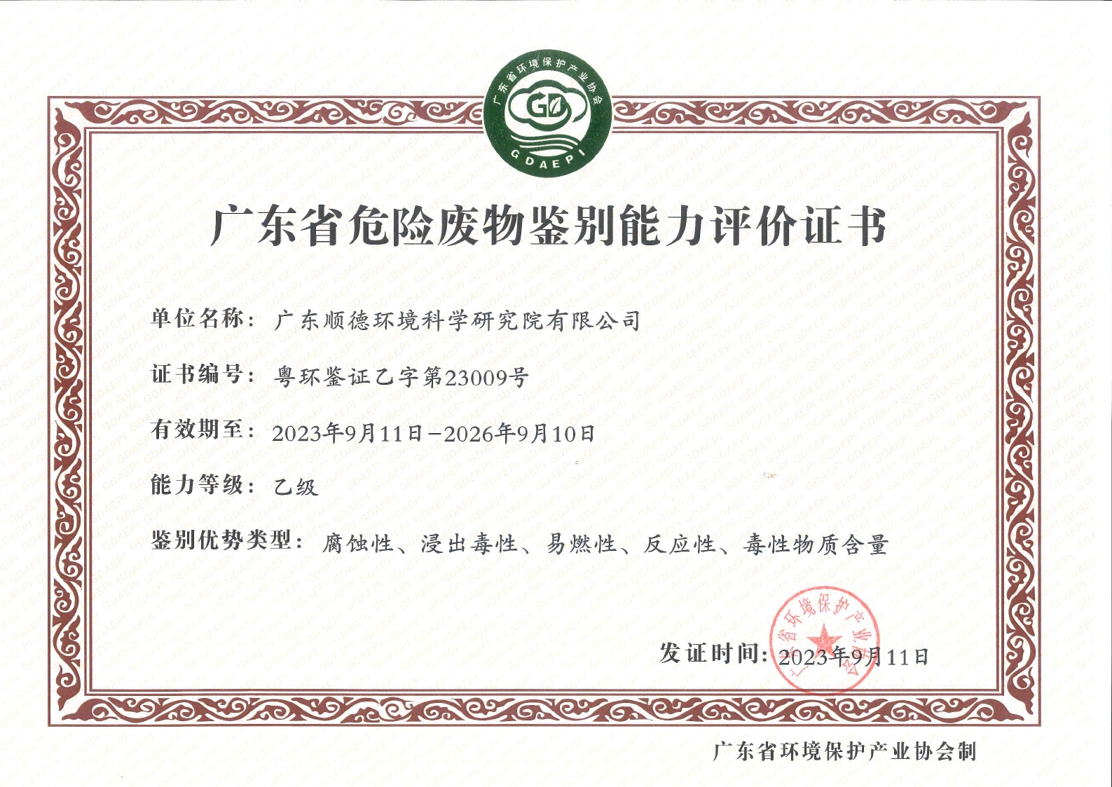 廣東省危險(xiǎn)廢物鑒別能力評(píng)價(jià)證書(shū)